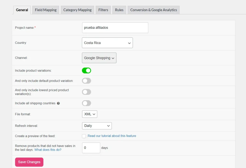 • Channel: Selecciona “Google Shopping” (Crucial para mantener una estructura de datos limpia).
