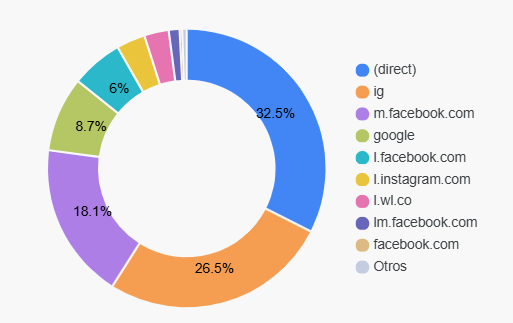 • Fuentes comunes: Google (búsquedas), Direct (gente que ya conoce tu marca), redes sociales o sitios referidos.