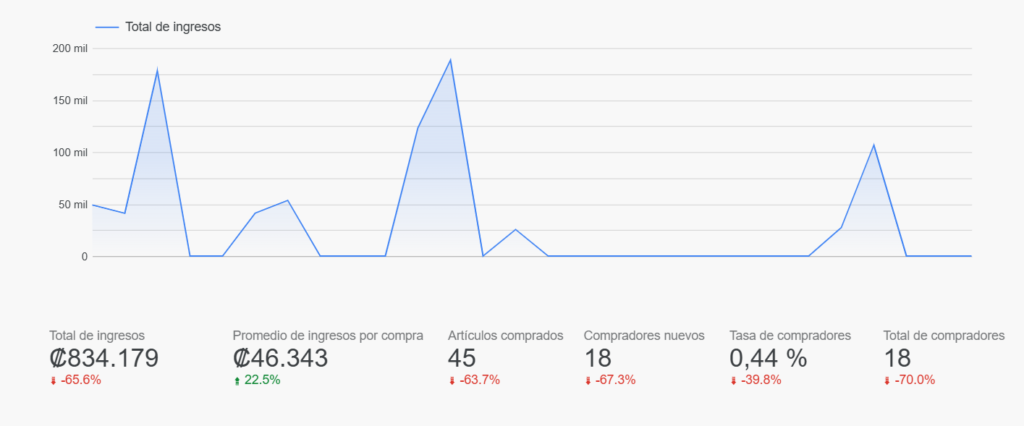• Tasa de compradores: El porcentaje de visitantes que se convierten en clientes reales.
