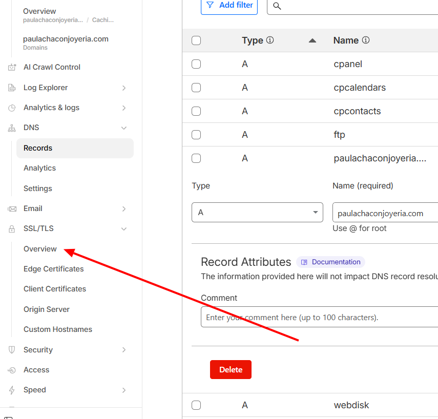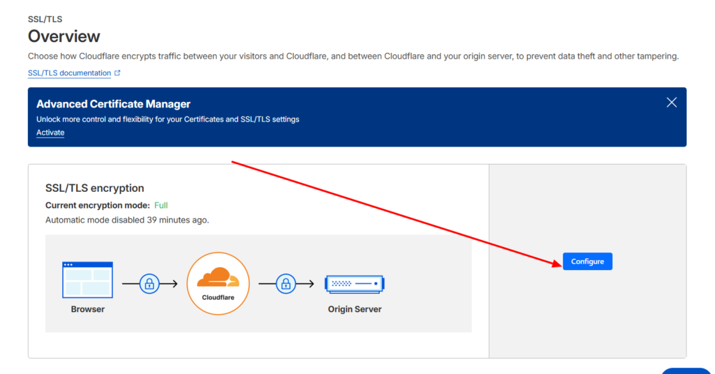 - Entra a SSL/TLS: En el menú lateral, busca la opción “Overview” (Información general).